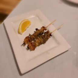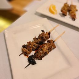 Make reservations and it's really only for dinner! Sat at the bar and it was cool to see them grill but also concerning because they don't use gloves! Definitely a more intimate setting. So it's definitely a place to try everything! In the end the most memorable for me was the beef tongue and Australian lamb - which is funny enough was what we started and ended with, respectively. Everything in the middle was a blur, but definitely filled us up. They do have the top 3 recommended chicken options but I definitely was not impressed by any of it. Skip the onigris. I also really liked the stuff mushrooms. Overall, glad I got to try this place! But the place can be a pricey of about around $40-50pp to make you full, depending on your appetite of course.